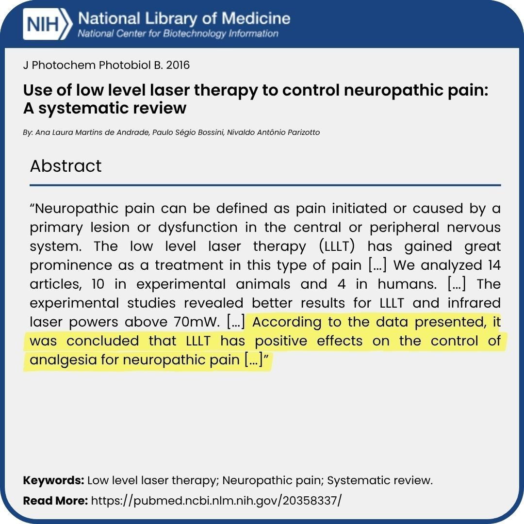 My chiropractor is using red-light light therapy on my ankle/foot and thigh but that is only 2 days a week. With this device I can use it the days I do not see him.  It is flexible enough to wrap around my toes,foot and ankle. The remote is a nice touch. I did have too look up Frequency for pain-660-670 with pulsing lights and red/infred lights.